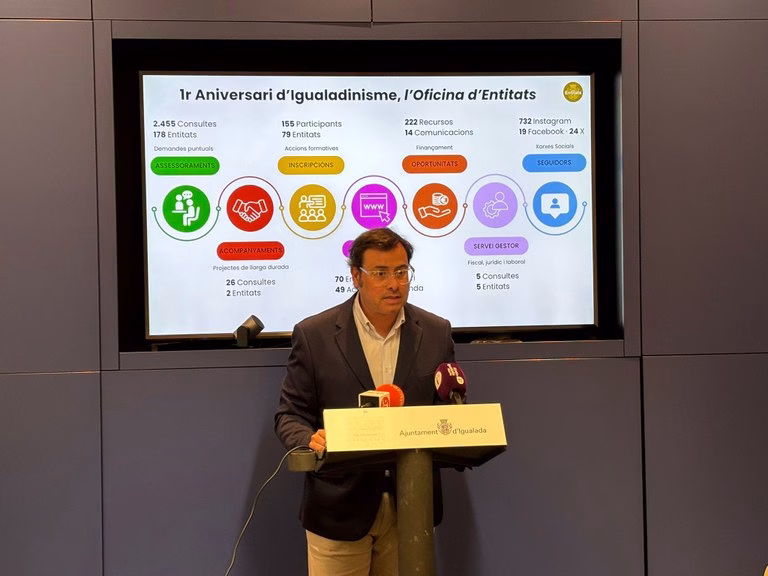 Un any després, els resultats confirmen l’èxit d’aquesta aposta. 186 entitats han rebut assessorament i acompanyament a través de l’Oficina d’Entitats, que ha registrat 2.760 usos en el seu primer any de funcionament. El servei s’ha consolidat com un punt de referència per a associacions, entitats culturals, esportives i socials, oferint suport personalitzat i formació a totes aquelles persones que fan possible el teixit associatiu igualadí.